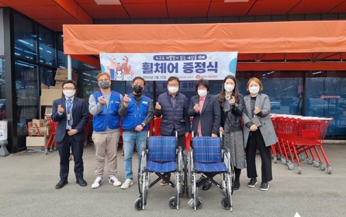 ▲ 지난 25일 제천장애인부모연대가 CK식자재마트 제천점에 휠체어 2대를 기탁했다.충북 제천장애인부모연대가 지난 25일 CK식자재마트 제천점에 장애인의 편의 증진 및 접근성 보장을 위해 휠체어 2대를 기증했다.제천장애인부모연대 전산월 회장은 “이번 기증을 통해 많은 분