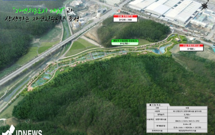 ▲ 완충저류시설 조감도충북 제천시는 전국 최초 생태습지형 완충저류시설 건립이 환경부 승인을 거쳐 최종 확정 됐다.16일 제천시에 따르면 왕암동 282번지 제1산업단지내 24,090㎡부지에 조성되는 이번 사업은 총 사업비 173억원으로 이 중 158억원이 정부
