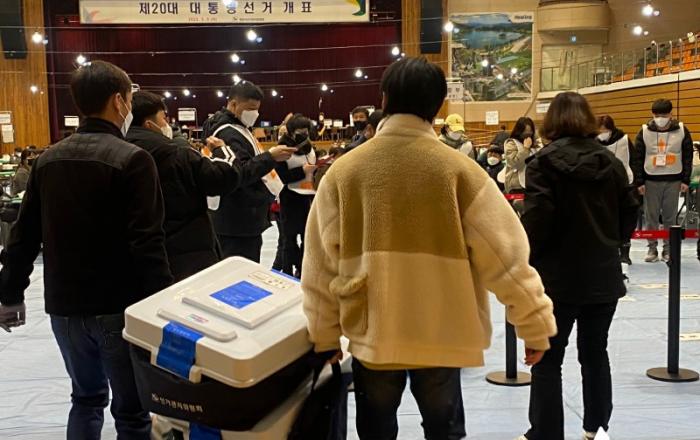 제20대 대통령 선거 본 투표가 마감된 금일(9일) 오후 7시 30분 이후 각 투표소에서 가져온 투표함이 개표소인 충북 제천체육관에 도착해 개표가 시작됐다.개표 과정을 살펴보면 먼저 투표함이 제대로 봉인됐는지 확인한 후, 책상 위로 투표지를 쏟은 후 선거 사무원들이