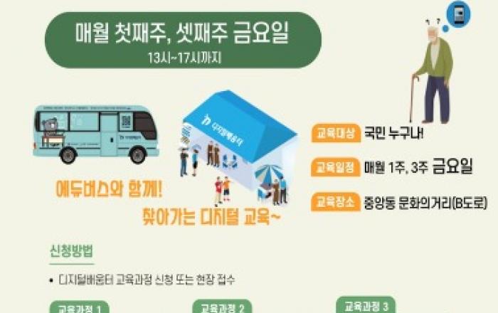 ▲ 찾아가는 디지털 '에듀버스' 교육강원 원주시는 원주시민의 디지털 역량 강화를 통해 디지털 사각지대를 해소하기 찾아가는 디지털 <에듀버스> 교육을 운영한다. 찾아가는 <에듀버스> 교육은 12월 15일까지 진행되는 강원디지털 배움터 야외과정 교육