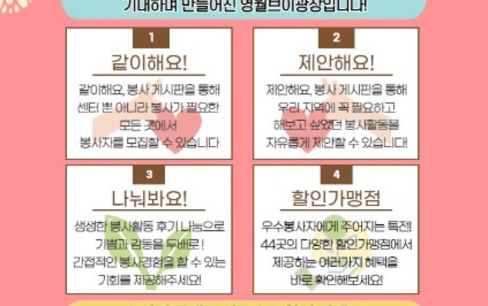 ▲ 영월군자원봉사센터 도 최초 온라인플랫폼 개설강원 영월군자원봉사센터는 오는 4월 25일 온라인플랫폼(명칭:영월브이광장)을 신규 오픈 한다.(https://volunteer.ywvc.or.kr/). 특히 이번에 신설된 온라인 플랫폼은 도내 센터 최초의 시도로 지역 자원