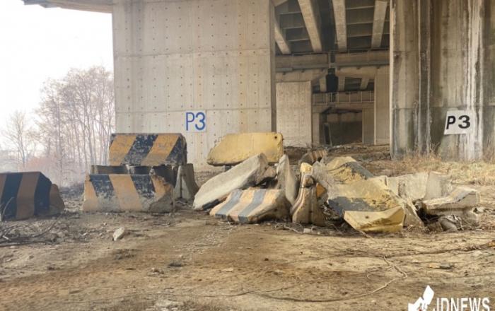 ▲ 한국도로공사 측이 재사용하겠다고 입장을 밝힌 콘크리트 방호벽의 모습 한국도로공사가 고속도로 교량하부 한 부지내 수 년간 도로시설물을 방치한데 이어 허술한 관리가 낱낱이 드러난 한편, 같은 장소인 교량하부 옆에 폐비닐과 생활쓰레기 수거장이 있어 화재위험에 노출돼 있다
