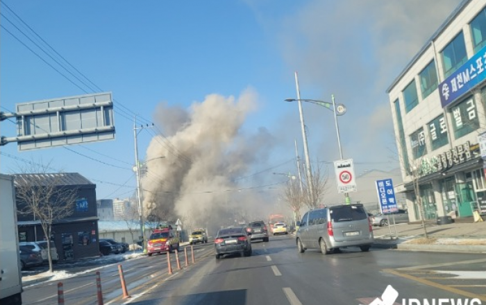 ▲ (사진=독자제공)충북 제천시 고암동 인근 한 업체 공장에서 화재가 발생했다.11일 소방당국에 따르면 이날 발생한 화재는 업체에서 열 처리하는 시설 공장을 철거하던 중 화재가 발생했다고 밝혔다.다행히 인명피해는 없으며, 소방당국은 오전 11시 5분경 화재 신고를 받고