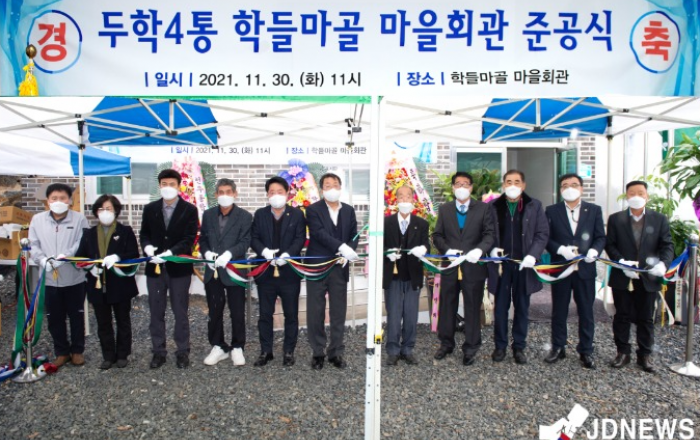 ▲ 지난 30일 두학4통 학들마골 마을회관 준공식이 개최됐다.충북 제천시 신백동 두학4통 학들마골 마을회가 지난 30일 신축 마을회관 준공식이 개최됐다고 밝혔다.이날 준공식엔 이상천 제천시장, 배동만 제천시의회의장, 전원표 도의원 등 주요 내빈과 주민 70여명이 참석한
