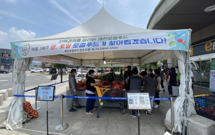 ▲ 제천로컬푸드 이마트 앞 직거래장터 전경JD News 유소진 기자 = 충북 제천시는 올해 제천로컬푸드 이마트 앞 직거래장터가 많은 시민들이 이용한 가운데 성황리에 마무리가 됐다고 31일 빍혔다. 이마트 앞 직거래장터는 지난 5월 21일을 시작으로 10월