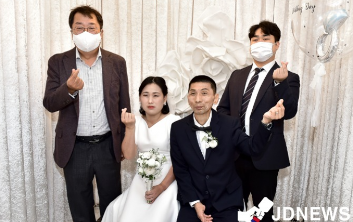 ▲ 반값 결혼식 행사에 이상천 제천시장이 하객으로 참석해 예비부부에게 축하와 격려를 보냈다.JD News 유소진 기자 = 행정안전부 공모사업인 청년공동체 활성화사업으로 추진된 충북 제천시 청년단체 ‘바른청년정책을싹틔우는바싹’(이하 ‘바싹’)의 ‘우리 지금 반함 네 번째
