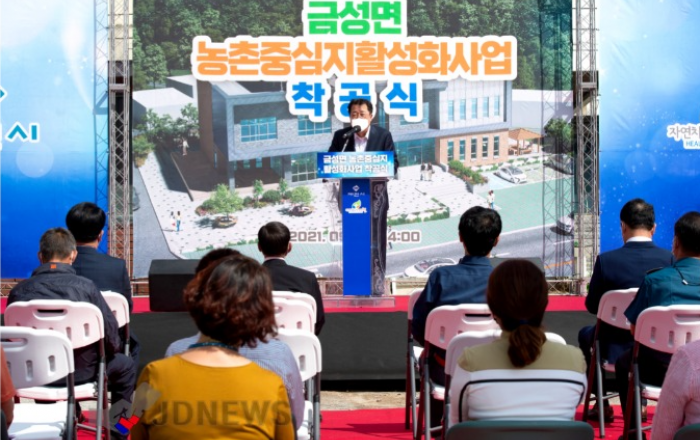 ▲ 지난 24일 열린 금성면 농촌중심지활성화사업 착공식 모습JD News 유소진 기자 = 충북 제천시가 지난 24일 도농상생의 중심지로 새롭게 도약하기 위해 금성 농촌중심지활성화사업 착공식을 가졌다. 26일 제천시에 따르면 이날 착공식에는 이상천 제천시장, 배동만 제천