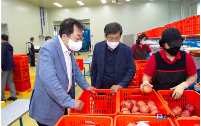 ▲ 지난 8일 이 시장은 남제천농협 농산물산지유통센터 현장을 방문해 농민들과 농협 관계자들을 격려했다. JD News 유소진 기자 = 이상천 제천시장은 지난 8일 추석명절을 앞두고 남제천농협 농산물산지유통센터 현장을 방문했다. 이날 이 시장은 요즘 한창 당도