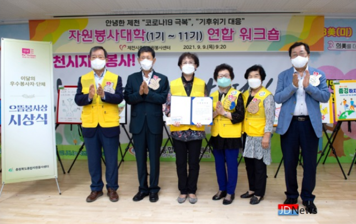 ▲ 자원봉사대학 임원진 연합 워크숍이 지난 9일 개최됐다.JD News 유소진 기자 = 제천시 종합자원봉사센터는 지난 9일 자원봉사센터 2층 교육장에서 자원봉사대학 임원진 연합 워크숍을 개최했다. 이날 행사에는 이상천 제천시장, 배동만 제천시의회 의장을