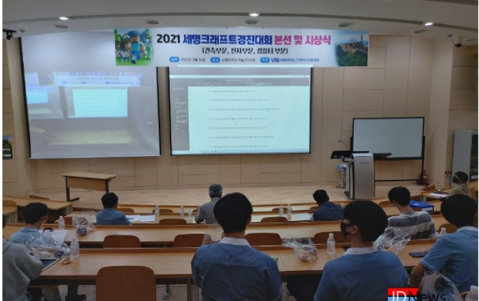▲ 10일 세명대학교에서 '2021 세명크래프트 경진대회 본선 및 시상식'이 진행됐다.JD News 유소진 기자 = 세명대학교가 오늘(10일) 전국 55개교 고교생을 대상으로 세명크래프트 경진대회를 실시했다.이날 실시된 고교생 경진대회는 메타버스시대의 대표적인 플랫폼인