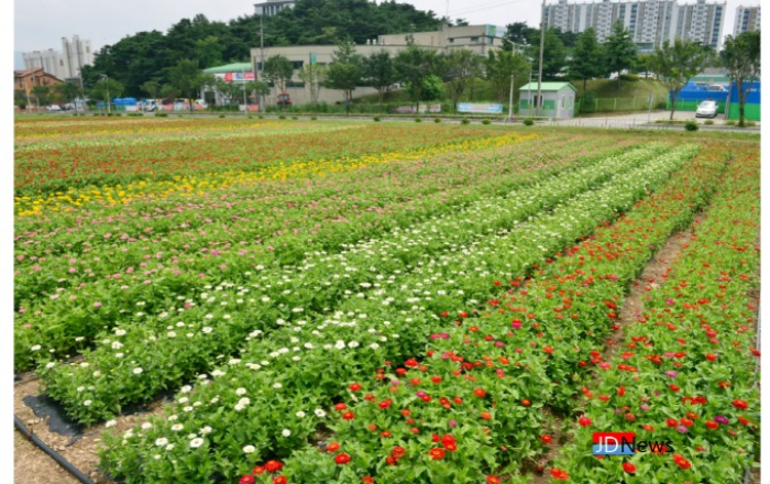 ▲ 제천비행장에 식재한 백일홍의 모습JD News 유소진 기자 = 제천비행장에 식재한 백일홍이 개화를 시작하며 시민들의 발길을 유혹하고 있다. 8일 제천시에 따르면 백일홍은 100일 동안 붉게 핀다는 뜻을 가진 꽃으로, 시는 시민들에게 도심 내 아름다운 녹화