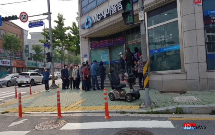 ▲ 매달 1일이면 지역 금융기관 입구에 지류화폐를 구입하기 위한 시민들이 줄을 서는 현상이 이어졌다.JD News 유소진 기자 = 제천시는 오는 8월부터 시민의 요구, 현 신종 코로나바이러스 감염증(코로나19) 방역상황 등을 고려하여 지류화폐 확대와 함께 할인한도에 대