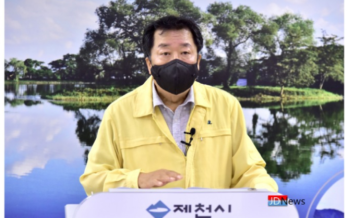 ▲ 20일 이상천 제천시장이 소백산국립공원 코로나19 집단감염 관련 브리핑 발표를 통해 시민들의 인근지역방문을 최소화해달라 강조했다.JD News 유소진 기자 = 20일 소백산국립공원 집단감염 관련 금일 신종코로나바이러스 감염증(코로나19) 추가 확진자 1명이 발생함에