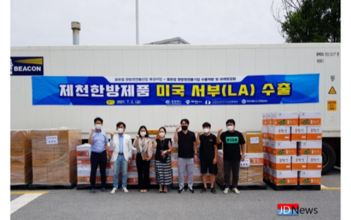 ▲ 제천한방제품 미국 서부(LA) 수출 달성JD News 유소진 기자 = 제천시가 지역내 우수한 한방천연물제품의 해외 판로개척을 위해 글로컬 한방천연물산업 육성사업을 지원하고 있다.6일 제천시에 따르면 제천한방바이오진흥재단(이사장 유영화)주관으로 미국 서부 LA지역에