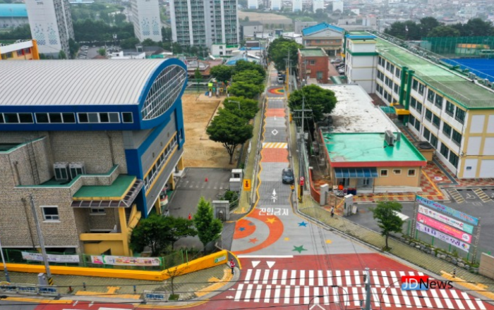 ▲ 제천시가 학교앞 어린이들의 안전한 등하교를 위해 범죄예방 디자인과 범용디자인을 적용해 사업을 완료했다.JD News 유소진 기자 = 제천시가 어린이들이 안전하게 등하교 할 수 있도록 범죄예방 디자인과 범용디자인을 적용해 추진한 “2021 안전하고 즐거운 학