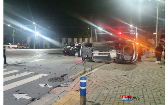 JD News 유소진 기자 = 제천시 서부동 제중사거리에서 일 오전 0시10분쯤 승용차와 SUV가 정면 충돌해 운전자와 동승자 등 3명이 크게 다쳐 병원으로 이송됐다.경찰에 따르면 제중에서 하소동 방향으로 직진하던 승용차와 하소동에서 시내방향으로 주행하던 SU