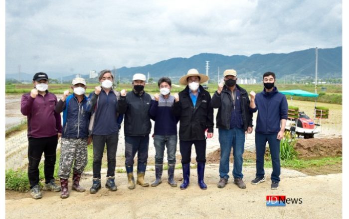 ▲ 제천시 의림지뜰 모내기 현장에 이상천 제천시장이 찾아 법인들을 격려하며 친환경단지 조성 지원을 약속했다.JD News 유소진 기자 = 제천시는 의림지의 농업용수를 몽리 지역으로 하는 의림지뜰에 친환경농업단지를 조성하여 친환경 벼 모내기를 추진하고 있다고 2