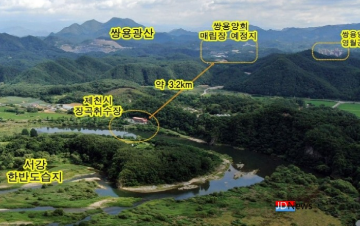 ▲ 쌍용C&E가 추진중인 영월 산업폐기물매립장에서 침출수가 제천시 상수도 장곡취수장으로 흘러들어 식수오염 된다고 제기됐다. JD News 유소진 기자 = 쌍용C&E(구 쌍용양회)가 추진하는 영월 산업폐기물매립장이 제천 등 인근 지역에 피해가 없다는 주장과 달리 제천시
