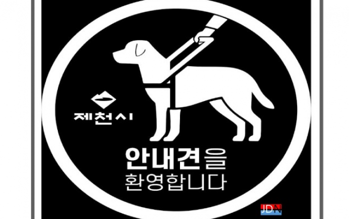▲ 제천시에서 제작한 장애인 안내견 환영 스티커 JD News 유소진 기자 = 제천시가 장애인 보조견에 대한 인식개선을 위해 보조견 환영 스티커를 제작해 배부한다고 26일 밝혔다. 안내견은 시각장애인의 안전하고 독립적인 보행을 돕고 청각장애인의 소리 인지를
