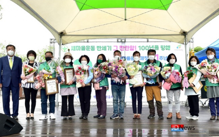 ▲ 제천시 ‘새마을운동 51주년 새마을의 날 기념식'을 개최했다.JD News 유소진 기자 = 제천시 새마을회(회장 이동연)는 지난 17일 제천시 의림지 수변무대에서 ‘새마을운동 51주년 새마을의 날 기념식'을 개최했다고 18일 밝혔다. 이날 행사는 이상천