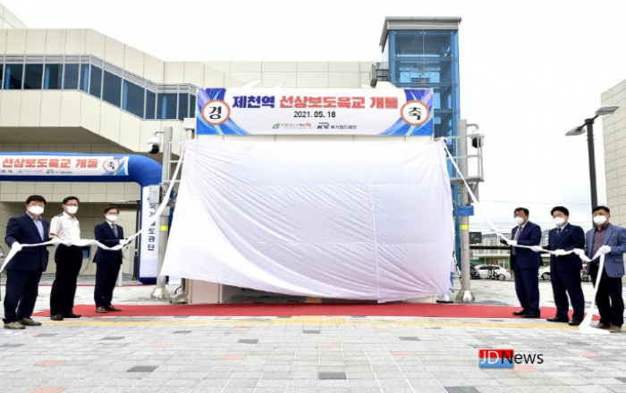 ▲ 제천역 선상보도육교 개통식 모습JD News 유소진 기자 = 제천시는 제천역 선상보도육교를 '국가철도공단'에서 인계받고 18일 개통식을 열었다. 개통식에는 이상천 제천시장, 배동만 제천시의장, 서정일 제천소방서장, 손병두 국가철도공단 강원본부장, 공단 및 시 관계