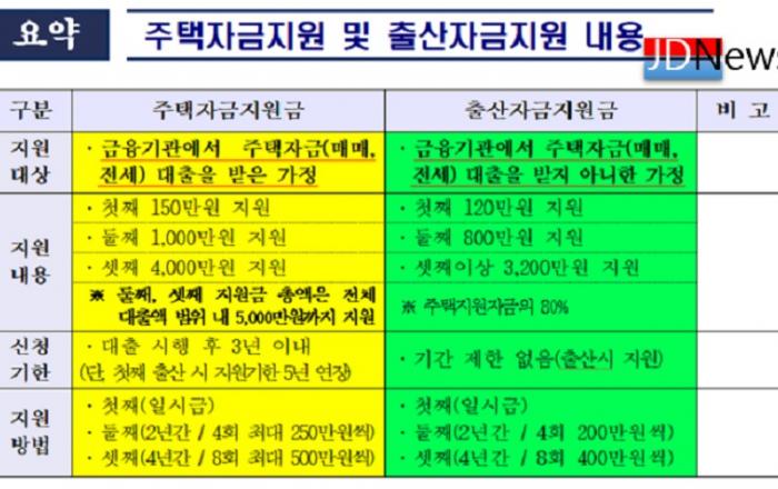 ▲ 지원 내용JD News 이용희 기자 = 전국 최초로 제천시(시장 이상천)가 인구 증가 정책의 일환으로 결혼·출산·주거 지원이 유기적으로 연계된 일명 “제천시 3快*한 주택자금 지원 사업”을 오는 1월 1일부터 시행한다.3快 : 결혼, 출산, 주거 고민의 상쾌한 해결