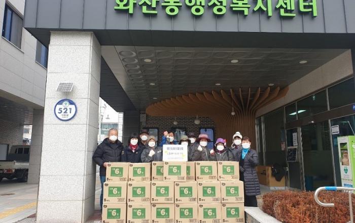 (제천=JD News) 이용희 기자 = 제천시 화산동통장협의회(회장 최완진)가 지난 7일 취약계층 지원을 위해 선물세트 156개(300만원상당)를 화산동행정복지센터에 전달했다. 통장협의회에서는 매년 김장철에 새우젓 판매 한 수익금으로 6년째 이웃사랑 실천에