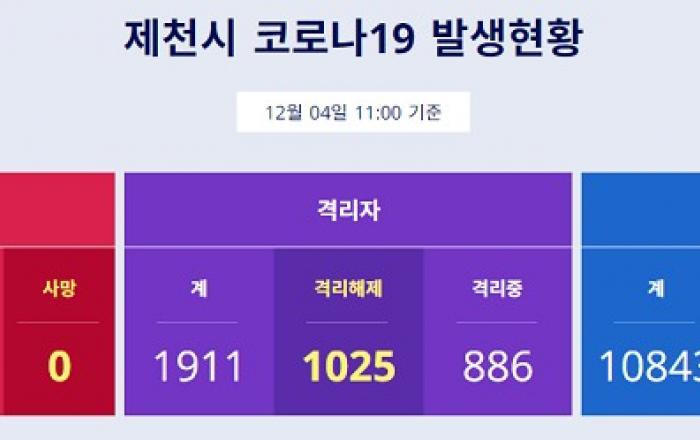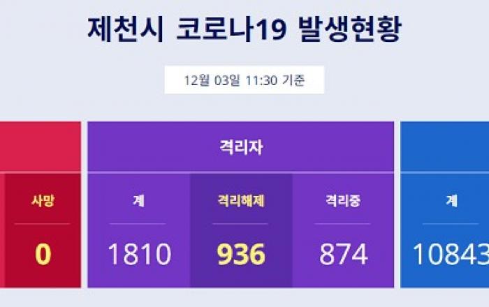 ▲ 제천시 코로나 19 발생현황 인용(3일 11:30 기준)(제천=JD News) 이용희 기자 = 제천에서 신종 코로나바이러스 감염증(코로나19) 확진자 3명이 추가로 발생했다.전날 진단검사를 받은 417명 가운데 재검사 대상으로 분류된 3명을 대상으로 추가 검사를 했