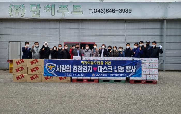 (제천=Jd News) 이용희 기자 = 제천 경찰서(서장 안효풍)와 보안자문 협의회 (회장 진주용, 간사 최용준)에서는 11. 20.(금) 제천시 관내에 거주하는 북한이탈주민들에게 김장 김치 180박스와 마스크 6,420매를 전달해 주었습니다.&nbs