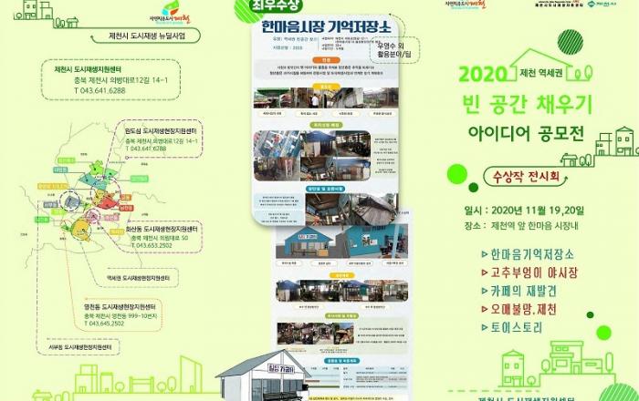 (제천=Jd News) 이용희 기자 = 제천시는 오는 19일부터 20일까지 이틀 동안 제천 역전한마음시장에서 ‘빈 공간 채우기 아이디어 공모작 전시회’를 개최한다. 이번 공모작 전시회는 충청북도 지역 역량 강화 사업의 일환으로 2019년 말 공모에 선정되어