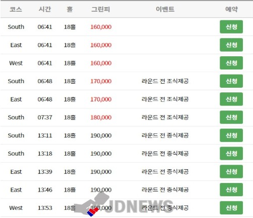 골프장 측이 골프장 이용료에 포함하는 조식이나 중식은 1만 5000원에서 2만원선이며, 현재 예약 중인 10월 6일 킹즈락골프장 이용료는 조식 포함의 경우 17만원 정도에 중식을 포함한 이용료는 19만원이다.