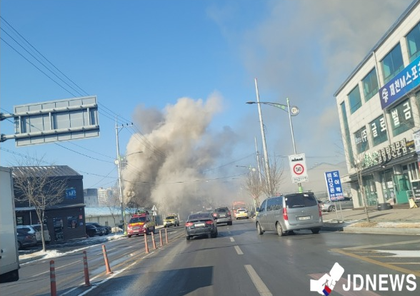 충북 제천시 고암동 인근 한 업체 공장에서 화재가 발생했다.