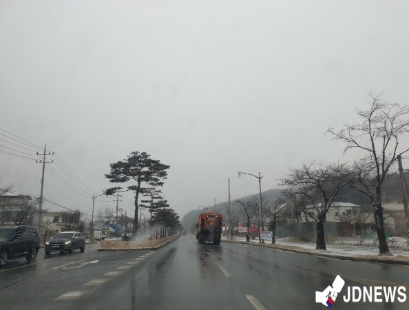 시는 지난 19일 강설과 도로결빙 등의 시민 불편을 최소화하기 위해 제설 덤프트럭 23대, 살수차 5대, 굴삭기 2대, 소금 250여 톤, 염수 20톤 등을 투입해 긴급 제설작업을 실시했다고 밝혔다.