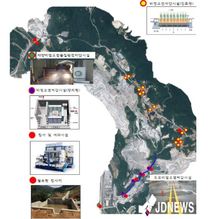2024년 준공을 목표로 매포읍 하시삼거리∼하괴삼거리 8.6km 구간에 IoT기반 노면살수시설(1.5km), 대형세차시설(2개소), 자연형침투시설(14개소) 설치를 통한 중금속 등 비산먼지 발생을 효과적으로 억제한다는 계획이다.