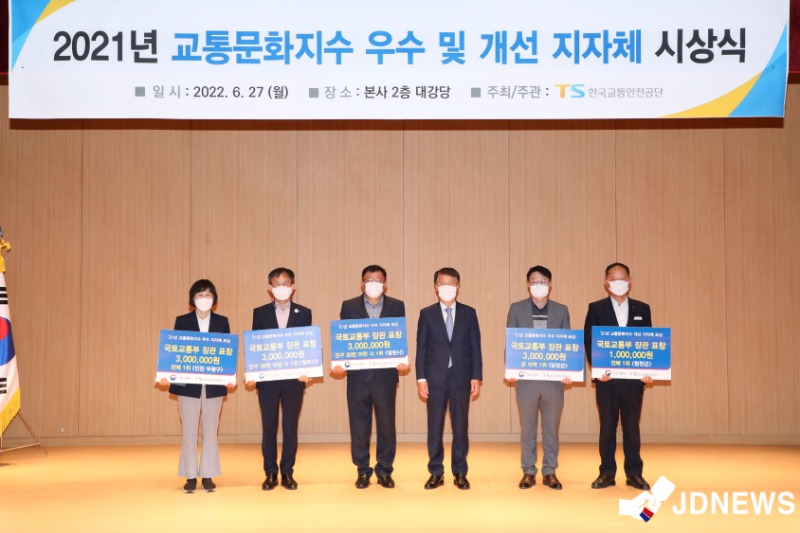 이날, 원주시는 인구 30만 이상 시 중 1위로 선정되어 국토교통부 장관상을 수상했으며, 교통문화지수 실태조사에서 3년 연속(2019~2021) 1위라는 대기록을 달성했다.