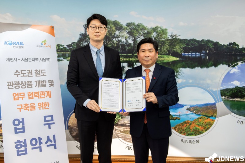 협약서에는 △ 레츠코레일, 코레일톡 등 코레일 공식 홍보인프라를 통한 제천시 관광프로그램 운영 △ 서울역, 청량리역 등 역을 활용한 제천시 관광상품 홍보 및 지원 △ 관광사업 홍보를 위한 제천시의 행·재정적 지원 등의 내용이 담겼다.