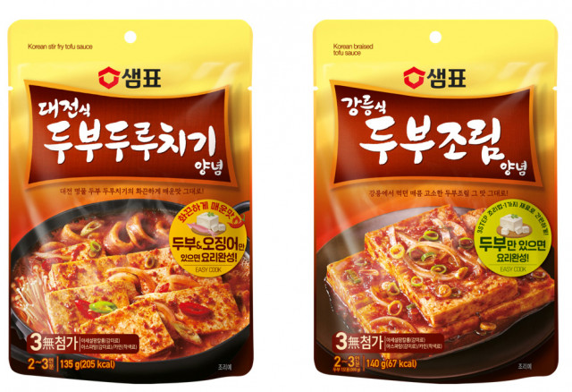우리 맛 연구 중심 샘표가 지역 명물 두부 요리를 집에서도 쉽고 맛있게 만들어 먹을 수 있는 ‘대전식 두부두루치기 양념’과 ‘강릉식 두부조림 양념’을 출시했다.