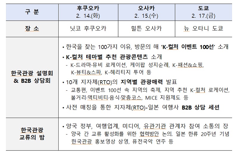일본 ‘K-관광 로드쇼’는 기업 간 거래(B2B) 중심의 이 달 행사와 기업·소비자 거래(B2C) 중심의 오는 4월 행사로 나눠 진행한다.