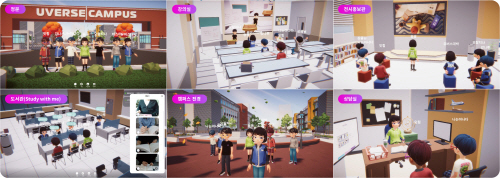 정형화된 맵에 표준 공간만 제공하는 기존 B2C 메타버스 서비스와 달리, 유버스는 현실을 그대로 미러링한 가상공간에서 학교별로 특화한 전용 공간과 학사에 필수적인 기능을 갖췄다.