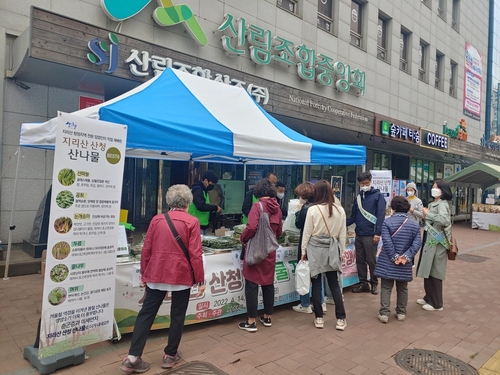 13일 산청군은 이날부터 오는 15일까지 서울 송파구 삼전동 산림조합중앙회와 서초구 양재동 농협하나로 마트에서 '지리산산청 산나물 꾸러미 특판행사'를 개최한다고 밝혔다.