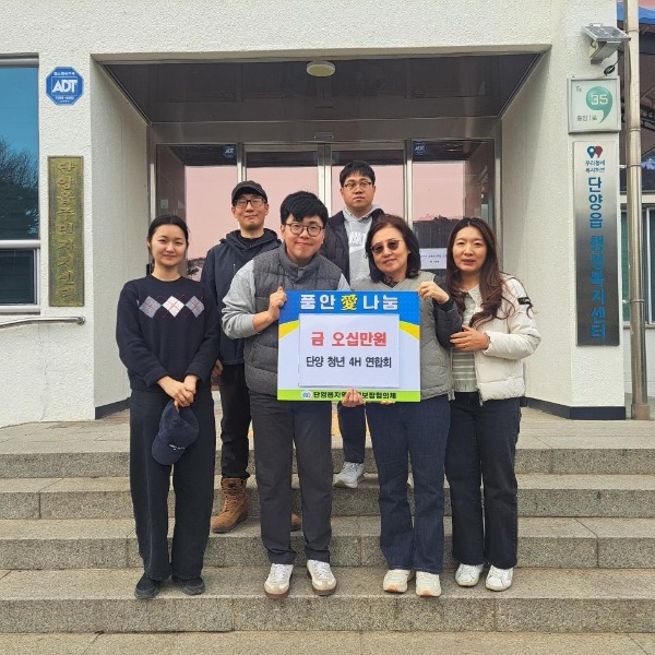 단양 청년 4-H 연합회(회장 김재현)는 지난 26일, 단양읍 행정복지센터를 방문해 주변의 어려운 취약계층을 위해 사용해 달라며 성금 50만 원을 전달했습니다.