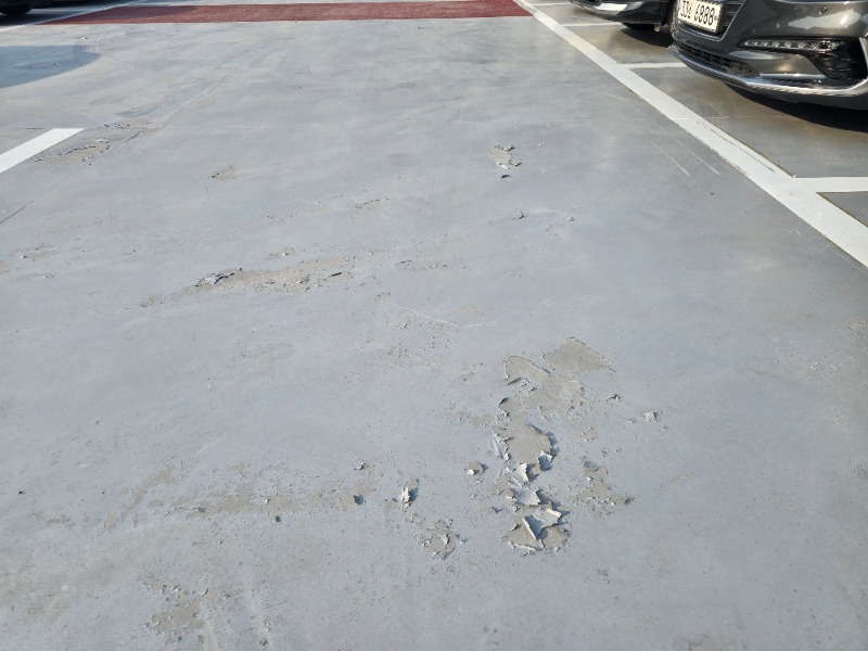 지난해 연말 준공된 지상 2층 3단, 295면 규모의 주차타워는 기본적인 내구성조차 갖추지 못한 상태다. 주차면 바닥 콘크리트의 갈라짐과 들뜸, 파손이 발생했으며, 도장 벗겨짐과 콘크리트 분진, 배수시설 주변의 마감 및 방수 불량까지 확인됐다. 특히 차량 주차 구간에서 콘크리트 표면이 분말화되는 현상까지 나타났다.