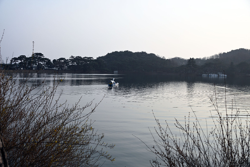 줄지어 정박해 있는 오리배들은 또 다른 장면을 만든다. 가지런히 늘어선 모습은 정지된 듯하지만,
