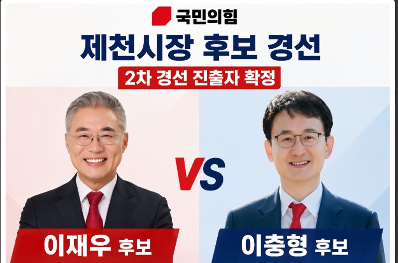 국민의힘 제천시장 후보 선출을 위한 경선에서 이찬구 후보가 탈락하고 이충형과 이재우 후보 2파전으로 압축돼 이 중 한 후보가 김창규 후보와 결선에서 붙게 됐다.