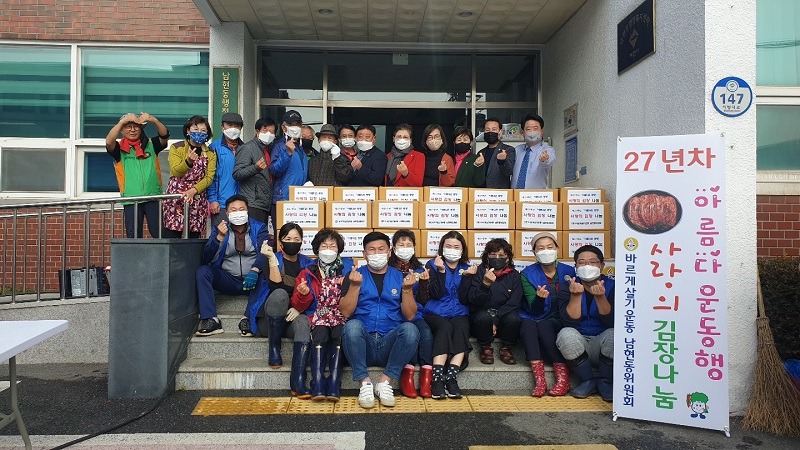 (제천=Jd News) 이용희 기자 = 제천시 바르게살기운동 남현동위원회(위원장 정해용) 위원들이 지난 12일과13일 양일에 걸쳐 사랑의 김장나누기 행사로 이웃사랑을 실천했다.