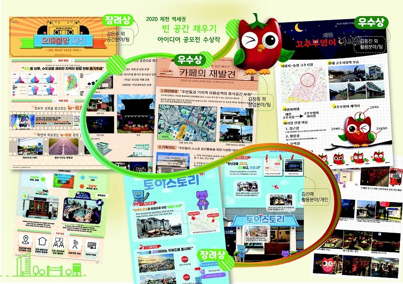 전시를 통해 다양한 공간 활용을 위한 주민 아이디어인 △한마음 시장 기억 저장소 △고추 부엉이 야시장 프로젝트 △카페의 재발견 △오매불망 제천 △토이 스토리 등 총 8작품 중 5작품(최우수1, 우수2, 장려2)을 선보일 계획이다.