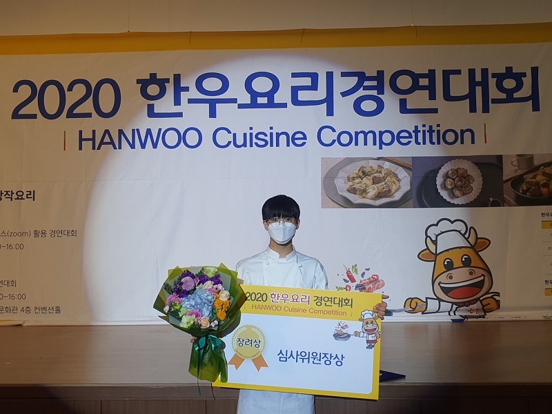 (제천=Jd News) 이용희 기자 = 한국호텔관광고등학교 이규재(3학년) 학생이 2020.KOREA 월드푸드 챔피언십에서 3개 종목 금메달 수상한데 이어 한우요리 경연대회에서도 심사위원장상을 수상했다. 지난 11월 7일 Zoom을 이용한 예선을 거쳐 선발된 16명의 고등부, 대학부 학생들이 본선을 위해 경기도 안산에 위치한 한국호텔관광실용전문학교에 모여 실력을 겨뤘다.
