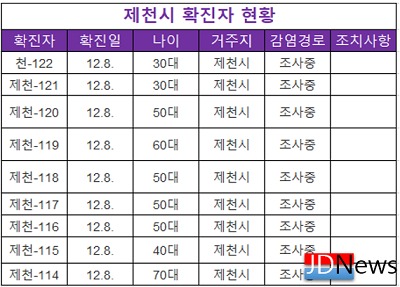 (제천=JD News) 이용희 기자 = 제천지역의 신종 코로나바이러스 감염증(코로나19) 확진자가 9명 추가 발생했다.