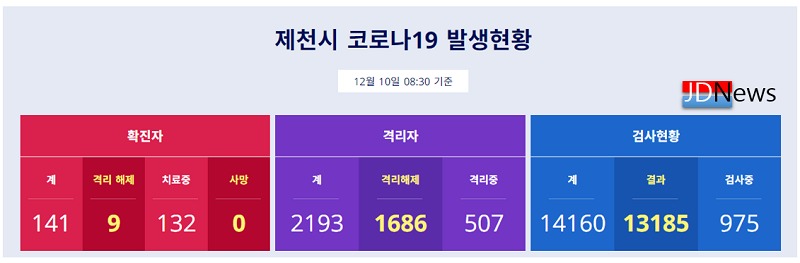 ▲ 10일 코로나19 4명추가 확진자 JD News 이용희 기자 = 제천지역 신종 코로나바이러스 감염증(코로나19) 확진자가 4명 추가 발생했다.