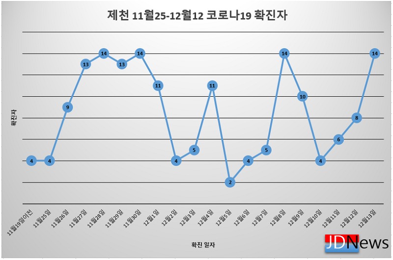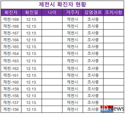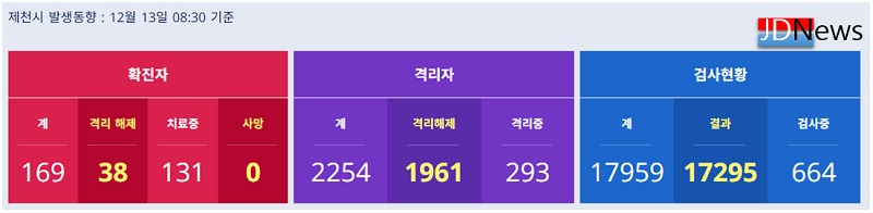 12일 제천시는 시민 651명과 자가격리해제 대상자 13명 등 664명에 대하여 코로나19 검사를 실시하여 14명의 확진자가 추가 발생했다.
